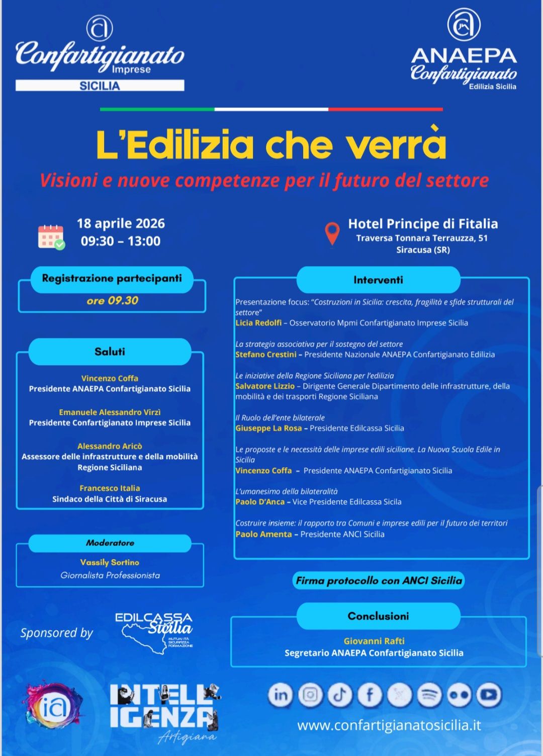 Il momento centrale della mattinata sarà la firma del protocollo d’intesa tra Confartigianato e ANCI Sicilia. L’accordo, che vedrà l’intervento del presidente dell’Associazione Comuni siciliani Paolo Amenta, punta a costruire un rapporto più solido tra amministrazioni locali e imprese edili, pilastro indispensabile per lo sviluppo dei territori.